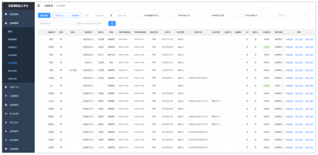 可多維度篩選訪(fǎng)客登記記錄,查看訪(fǎng)客來(lái)訪(fǎng)狀態(tài),支持導(dǎo)出,便于管理。