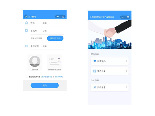 小程序采用定制化服務(wù),根據(jù)客戶需要進(jìn)行定制化,基于SaaS云端部署,實(shí)現(xiàn)外來(lái)人員來(lái)訪提前預(yù)約,到訪身份證核驗(yàn)功能,滿足機(jī)場(chǎng)控制區(qū)對(duì)外來(lái)人員的有效管理。